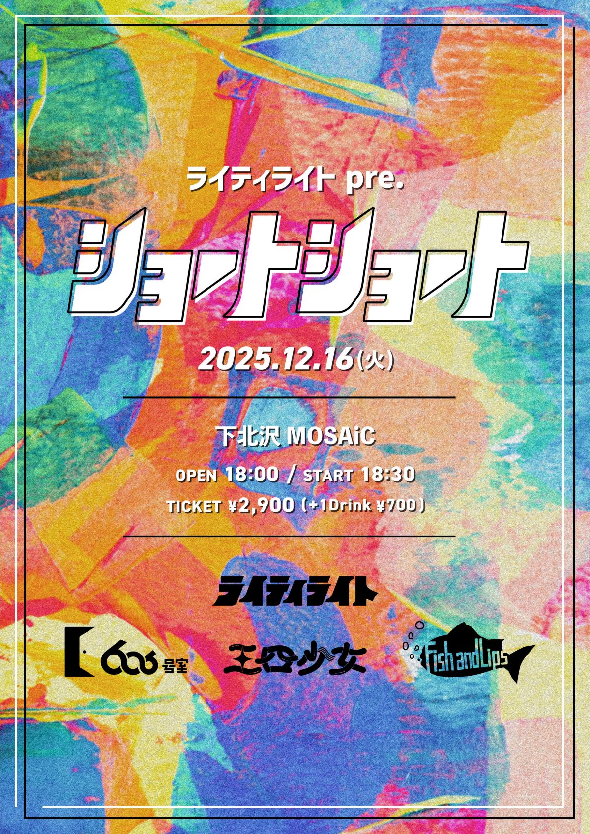 【一般発売】受付ページ:https://tiget.net/events/428659【問い合わせ】下北沢MOSAiC 03-5787-4559
