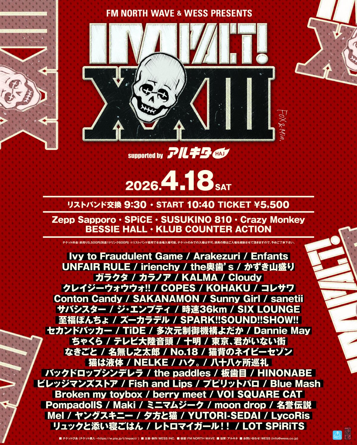 FM NORTH WAVE & WESS PRESENTS『IMPACT! XXIII 』supported by アルキタ